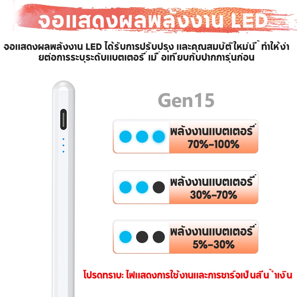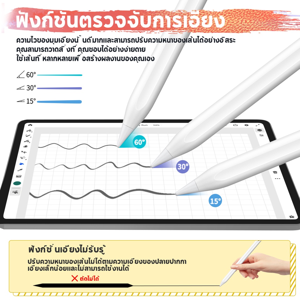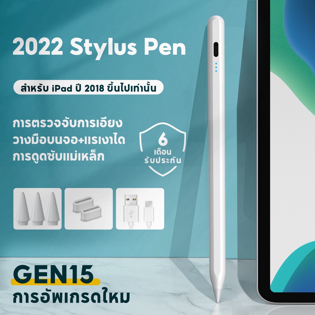 [ใหม่ ปากกาไอแพด] ปากกาทัชสกรีน pencil วางมือ+แรเงาได้ ปากกาสไตลัส ปากกา Stylus Pen สำหรับ iPad Air5 Air4 Air3 Gen10 Gen9 Gen8 Gen7,6 Mini6,Mini5 Pro 11 12.9 (2018-2022) M1 M2 ปากกา ipad