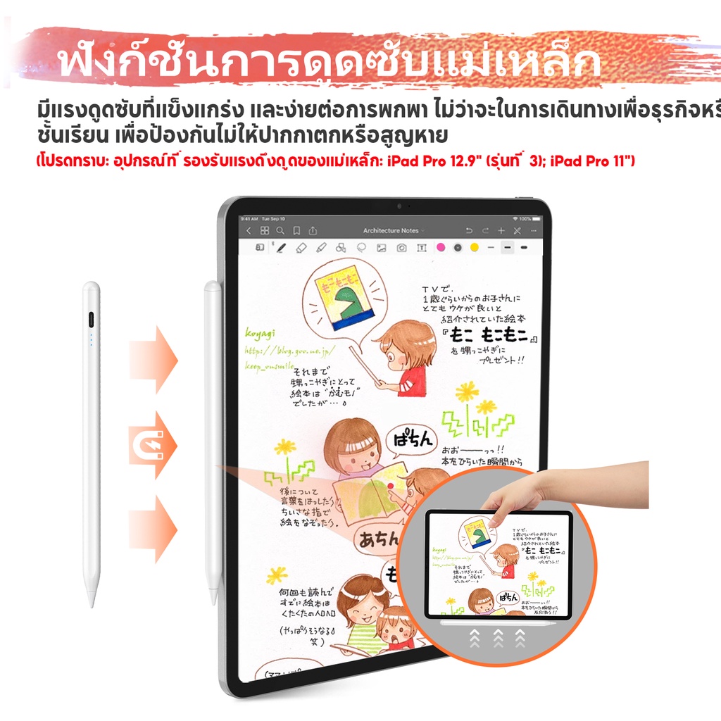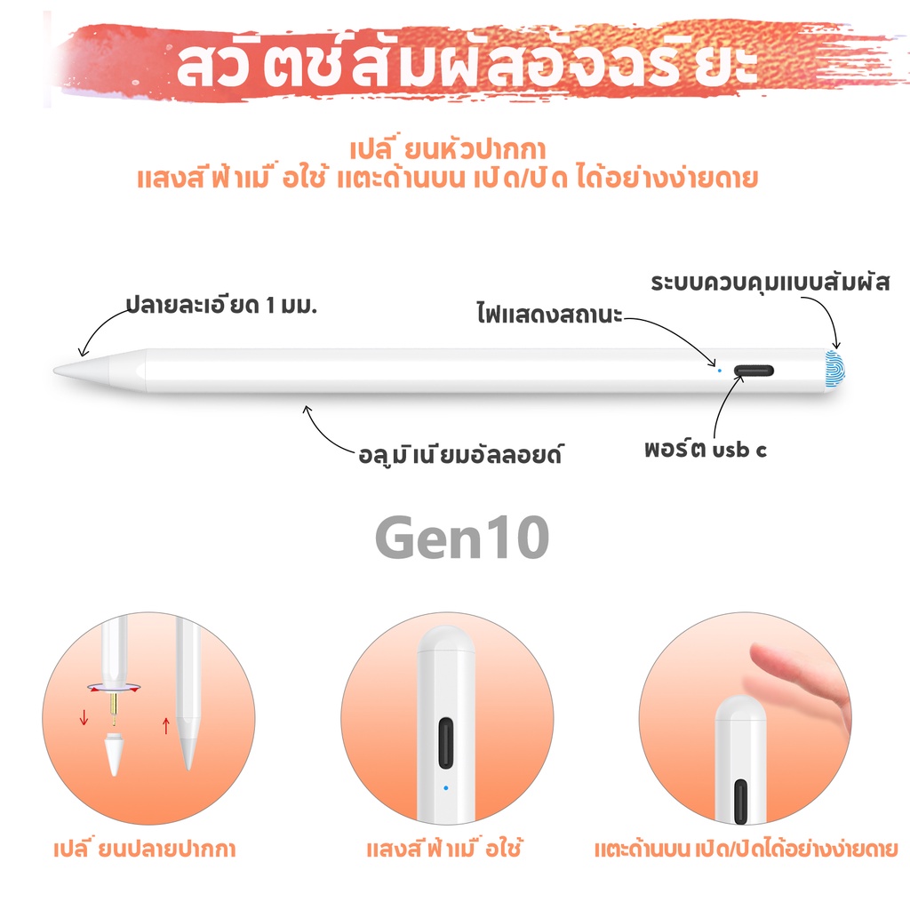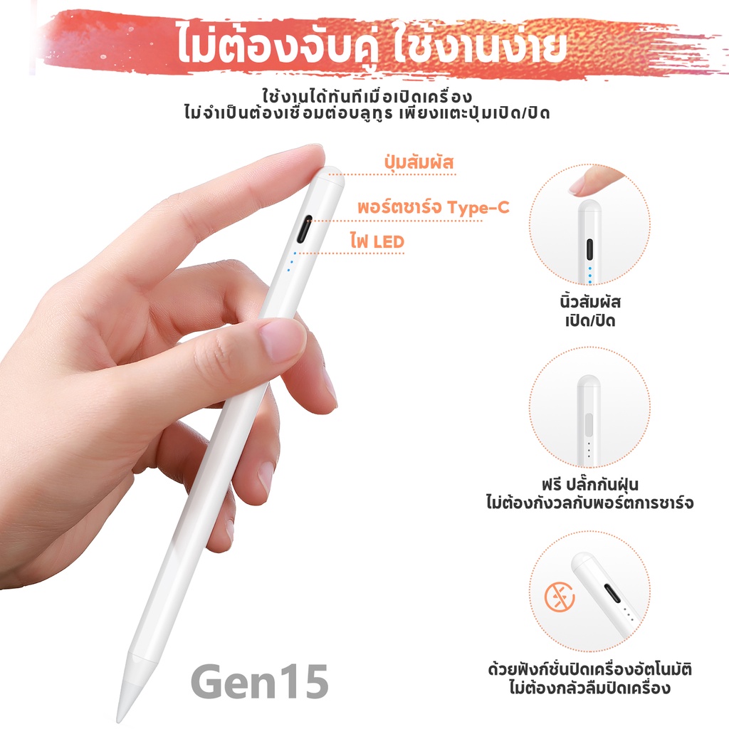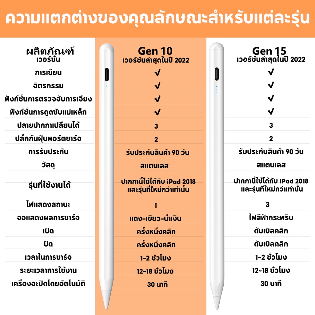 [ใหม่ ปากกาไอแพด] ปากกาทัชสกรีน pencil วางมือ+แรเงาได้ ปากกาสไตลัส ปากกา Stylus Pen สำหรับ iPad Air5 Air4 Air3 Gen10 Gen9 Gen8 Gen7,6 Mini6,Mini5 Pro 11 12.9 (2018-2022) M1 M2 ปากกา ipad