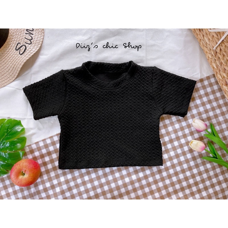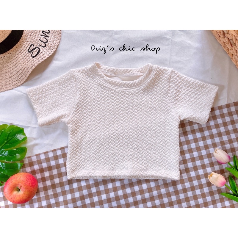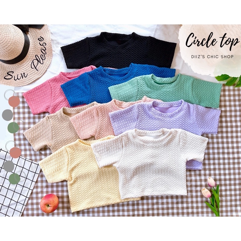 ❤️ Diiz’s ❤️ Circle Top เสื้อครอป เสื้อคอกลม แขนสั้น ผ้าอัดลายขนแกะ
