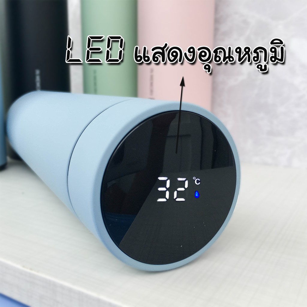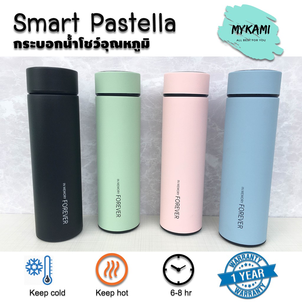 MYKAMI กระบอกน้ำเก็บความ ร้อน - เย็น LED รุ่น Smart Pastella ขนาด 500ml วัสดุ Stainless 304 ส่ง Kerry เก็บเงินปลายทางได้