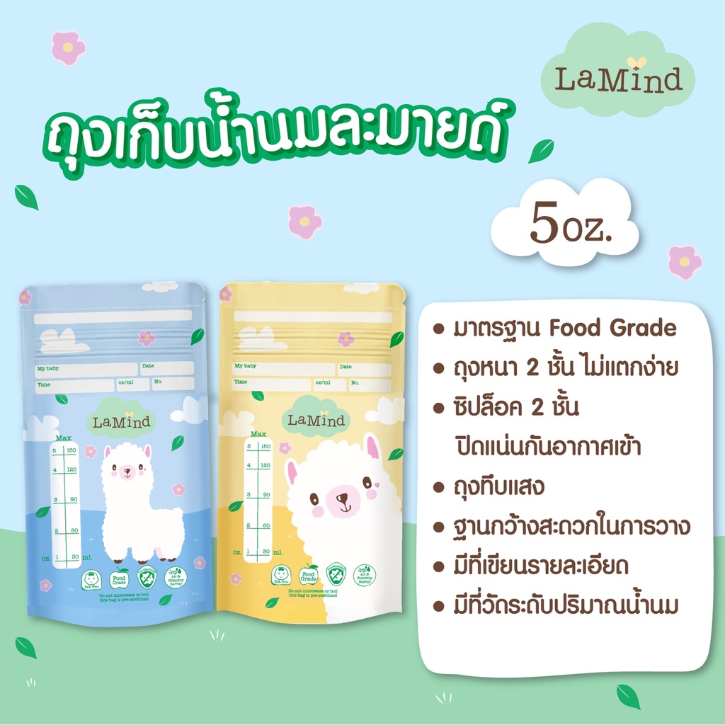 ถุงนมลดกลิ่นหืน 5ออนซ์ 8 ออนซ์ ถุงหนา แตกยาก!! ถุงเก็บน้ำนมแม่ Lamind ละมายด์ ถุงเก็บนม ทึบแสง พลาสติค 2 ชั้น เตรียมคลอด