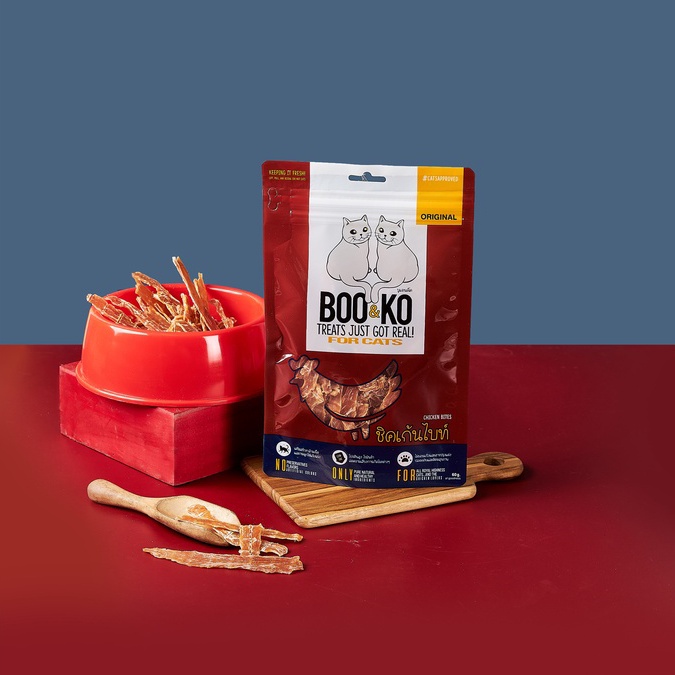 BOO&KO ขนมแมว เนื้อไก่อบแห้งชิ้นเล็ก 60 กรัม