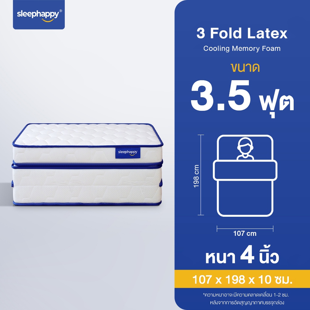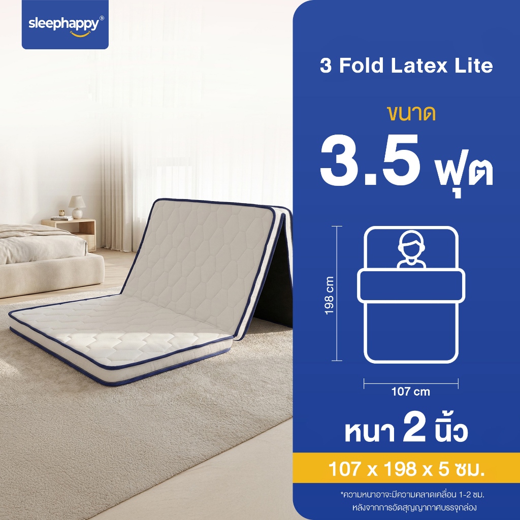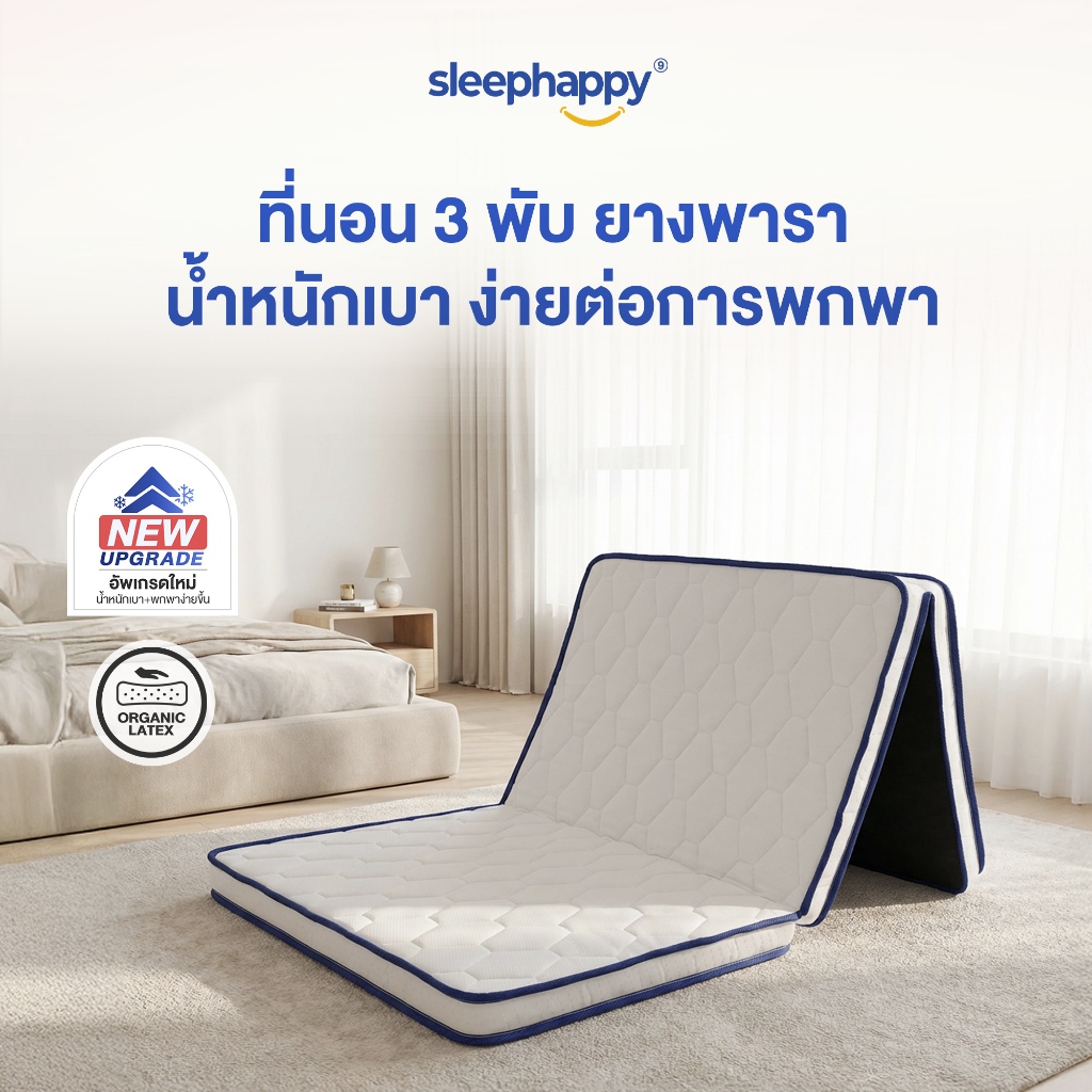 SleepHappy 3 Fold รวมที่นอน 3 พับ ท็อปเปอร์อเนกประสงค์ ช่วยลดเเรงกดทับ รองรับสรีระได้ดี พกพาสะดวก