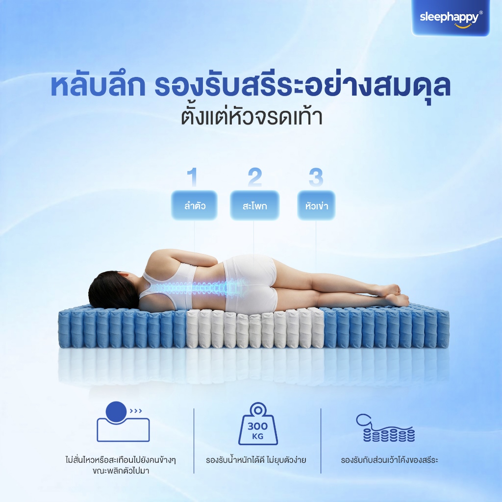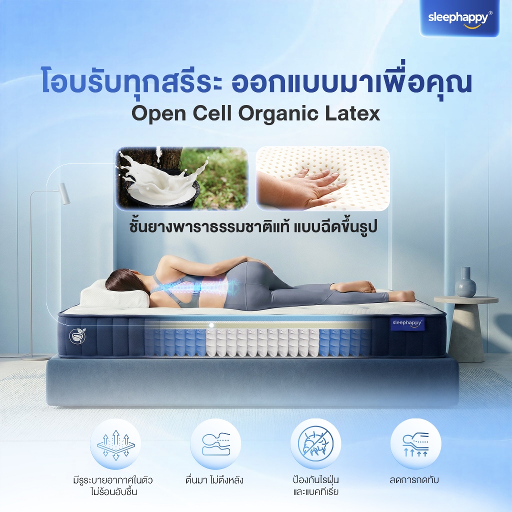 SleepHappy ที่นอนยางพาราและพ็อกเก็ตสปริง สัมผัสเย็น รุ่น Atlantis V2 Lite หนา 8 นิ้ว ให้สัมผัสแน่นนุ่ม หลับสบาย