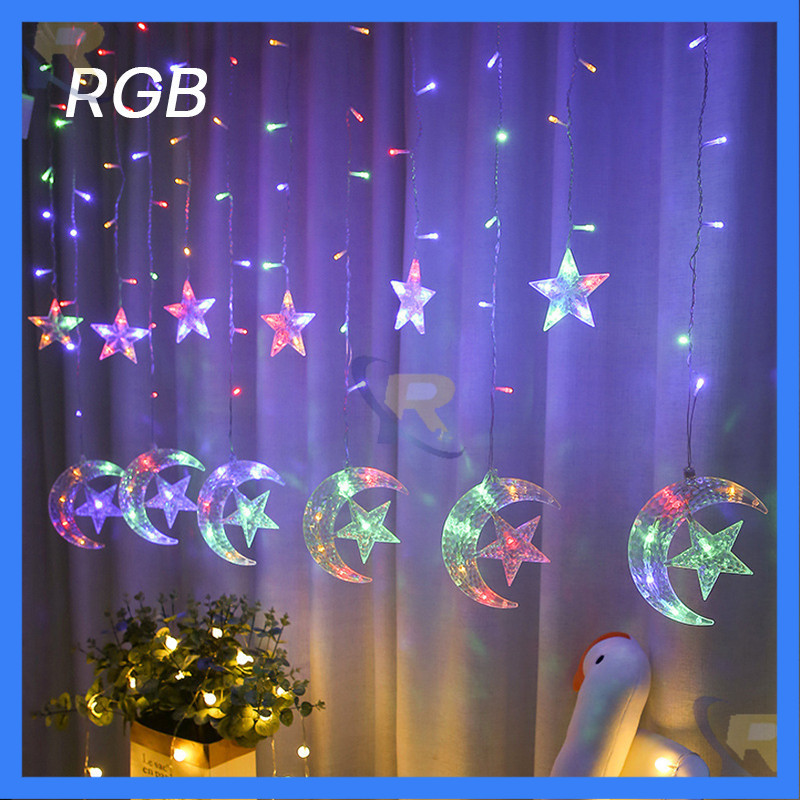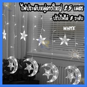 ไฟตกแต่ง (พระจันทร์+ดาว)ไฟประดับม่าน ประดับม่านหมู่ดาว ดีไซน์น่ารัก 2.5 เมตร (สีขาว สีวอมไวท์ สีรวม) ปรับได้ 8 จังหวะ