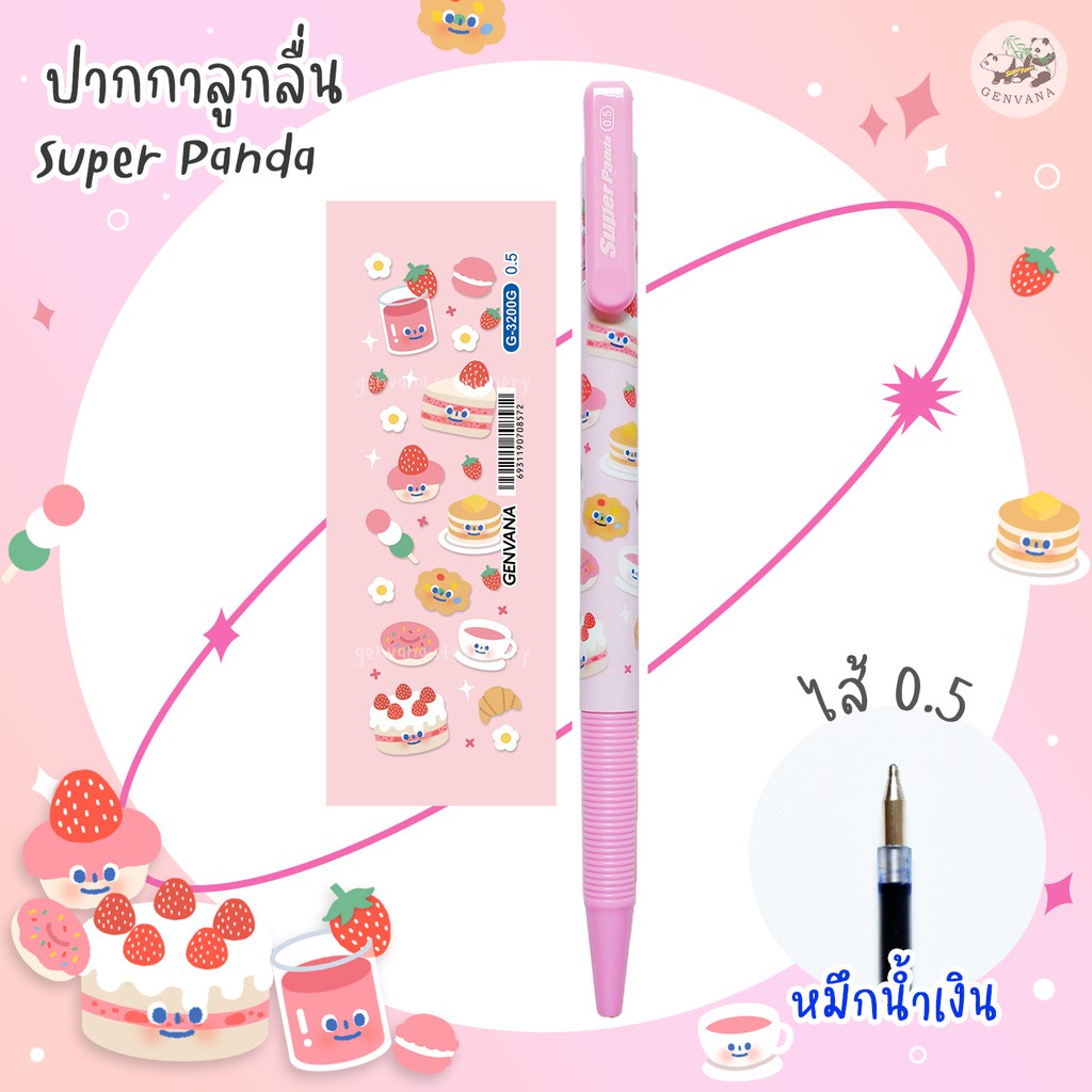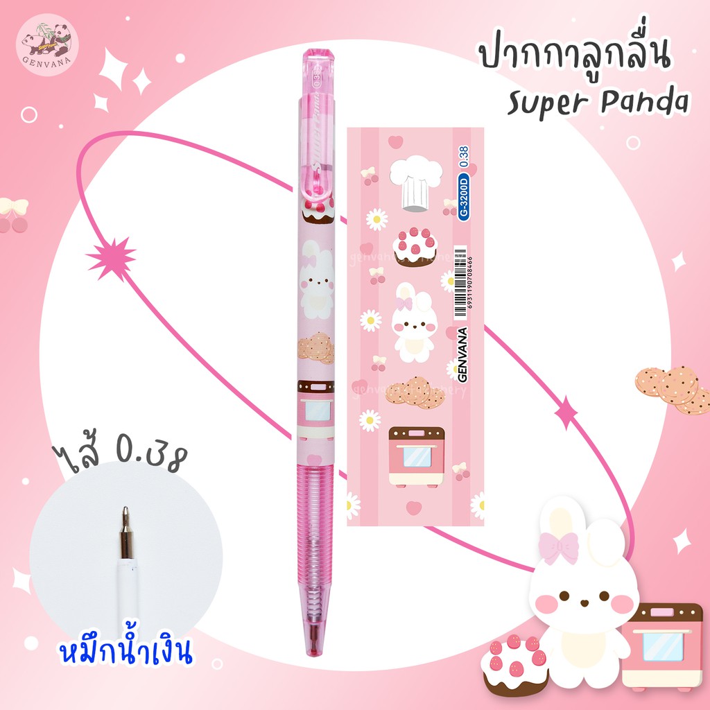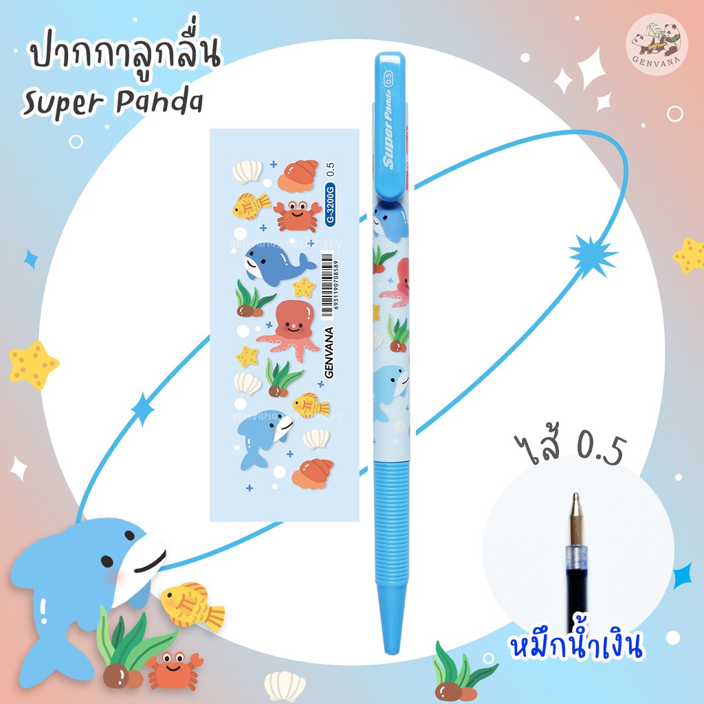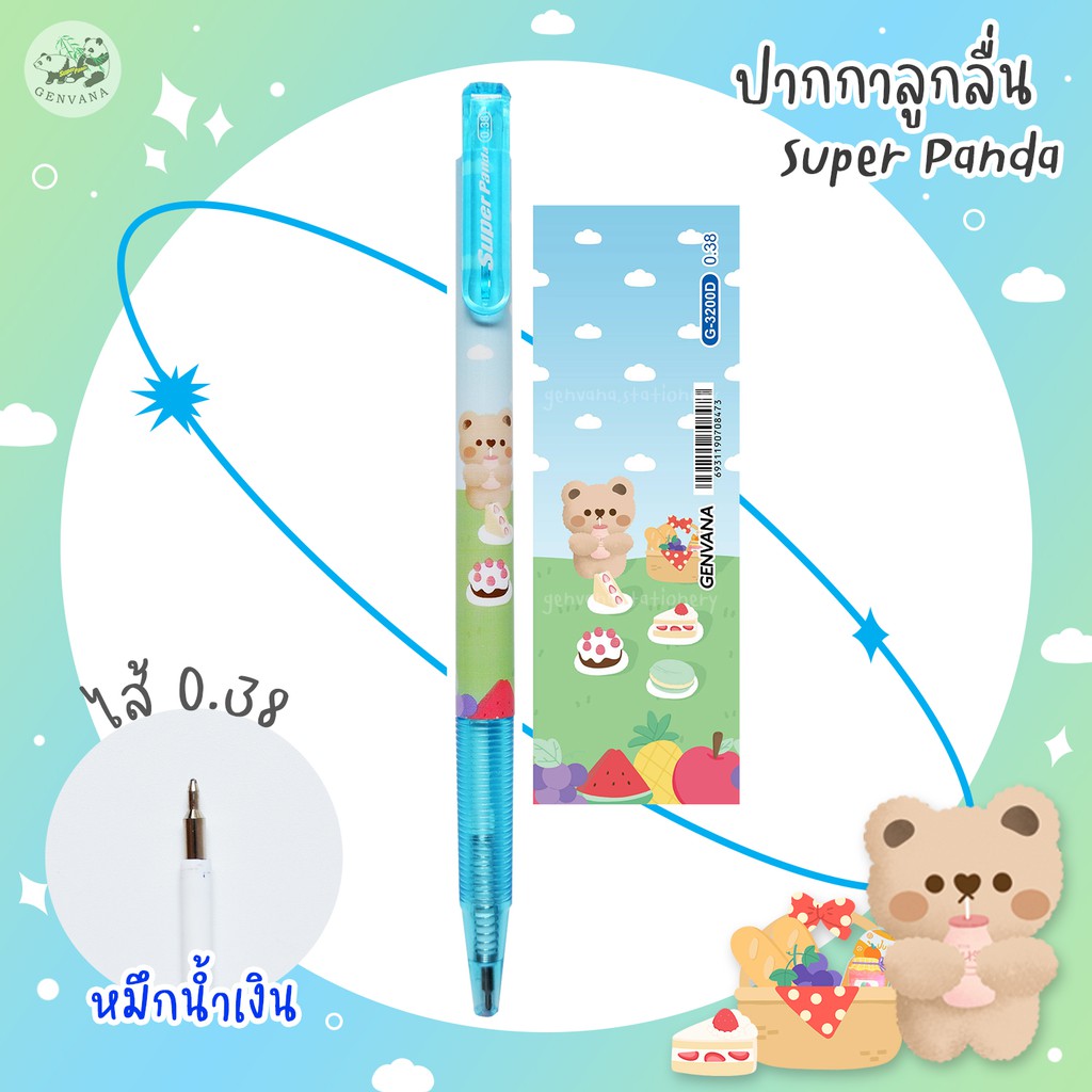 ถูกและดี! ปากกาน้ำเงิน 0.38 / 0.5 24ลาย ขายเป็นแท่ง Super panda GENVANA เขียนลื่นมาก (G-3200) ปากกา ปากกาลูกลื่น