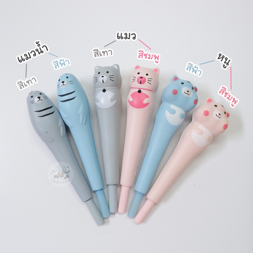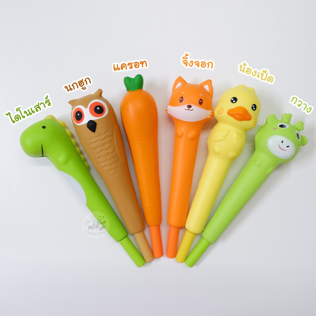 ปากกาสกุชชี่ นุ่มนิ่ม 12 แบบ หมึกน้ำเงิน บีบแล้วคืนรูป ปากกาเจล0.38 (6422) ปากกานุ่มนิ่ม ปากกาแฟนซี น่ารักน.