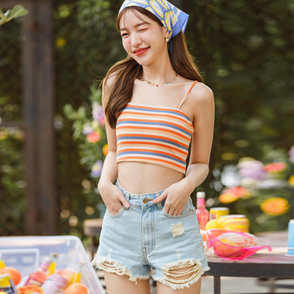 GENEDENIM กางเกงขาสั้น เอวสูง สียีนส์อ่อน (ยาว 11.5") EMMA LIGHT BLUE