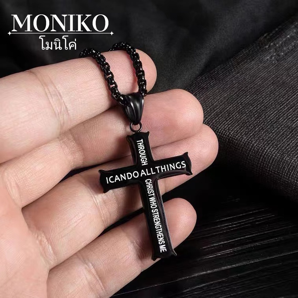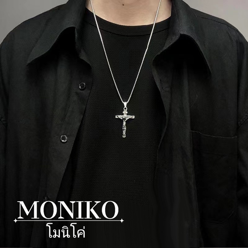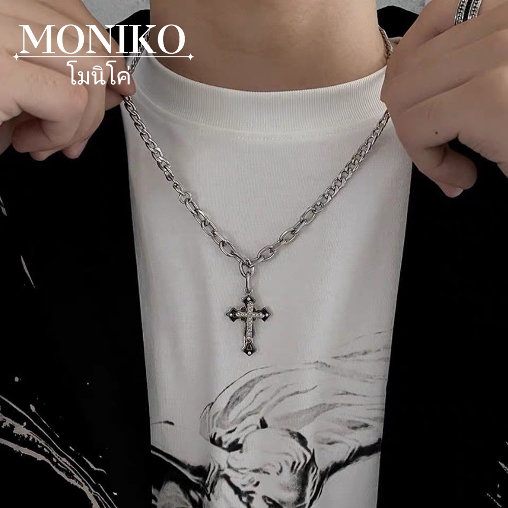 MONIKO สร้อยคอไม้กางเขนประดับเพชรหลายชั้น สไตล์ฮิปฮอป อเมริกา สตรีท สําหรับผู้ชายและผู้หญิง