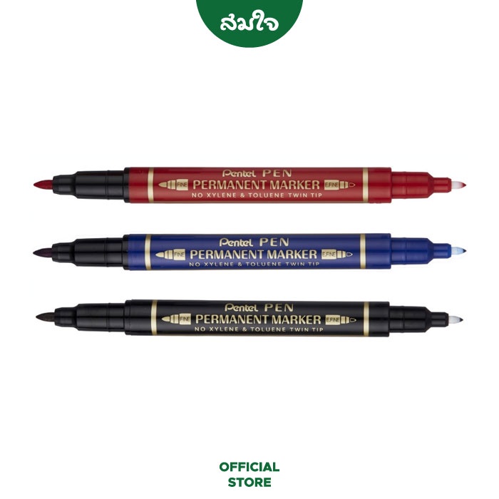 Pentel ปากกามาร์คเกอร์ Permanent 2หัว # N75W ปากกาเมจิก ปากกา ของแท้ สมใจเครื่องเขียน Somjai