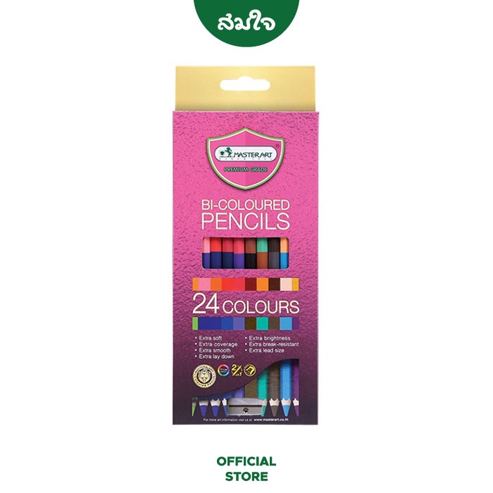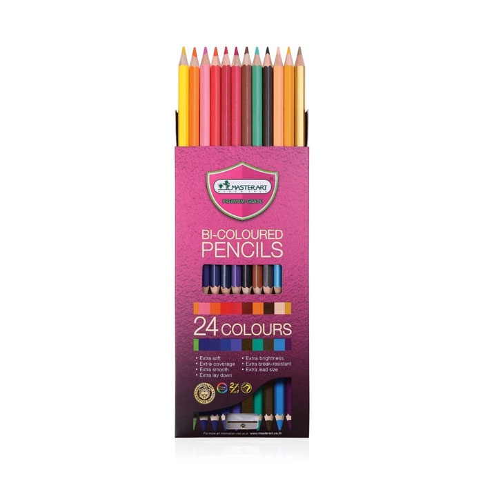 Master Art (มาสเตอร์อาร์ต) สีไม้ ดินสอสีไม้ 2 หัว Premium Grade 24 สี