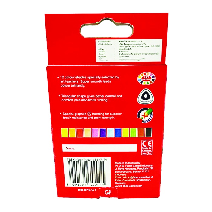Faber Castell ดินสอสีไม้ TRI COLOR 12 สี ด้ามสั้น