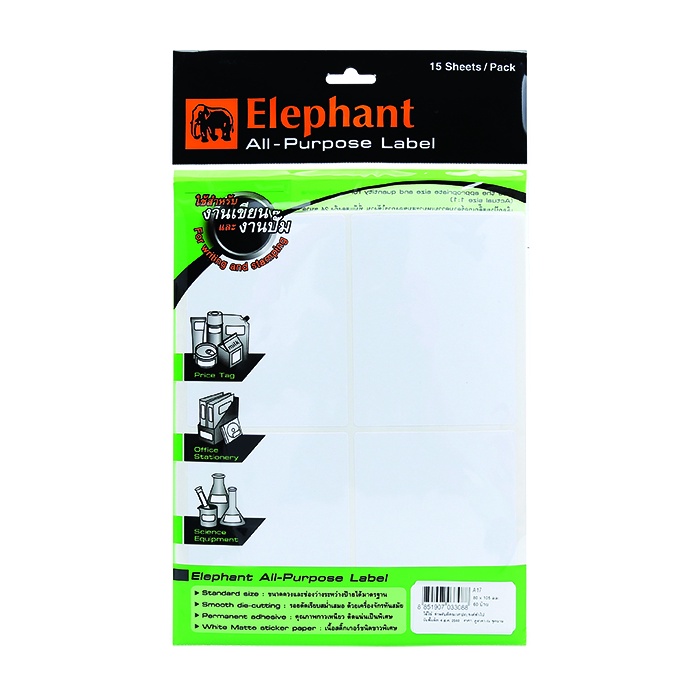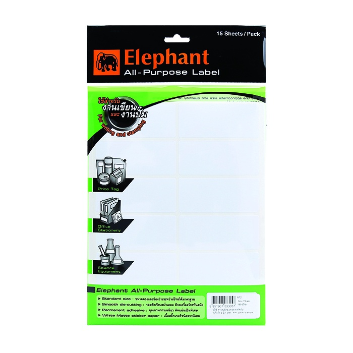 Elephant (ตราช้าง) กระดาษสติ๊กเกอร์ แล็บสติ๊กเกอร์ เบอร์ A1-A18