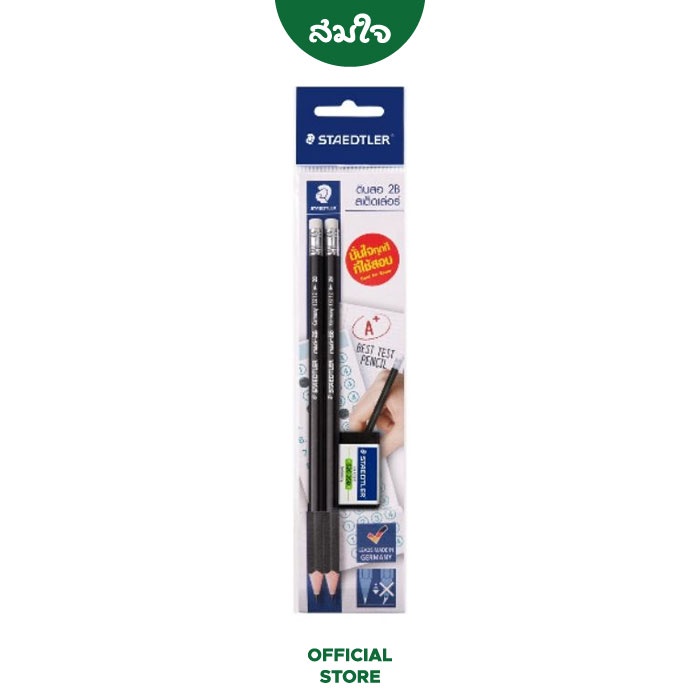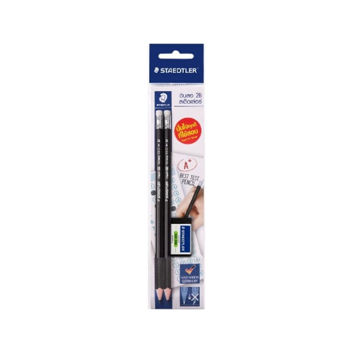 Staedtler (สเต็ดเลอร์) ดินสอ ชุดดินสอทำข้อสอบ #13212PB2 ดินสอ2B 2 แท่ง ยางลบ 1 ก้อน