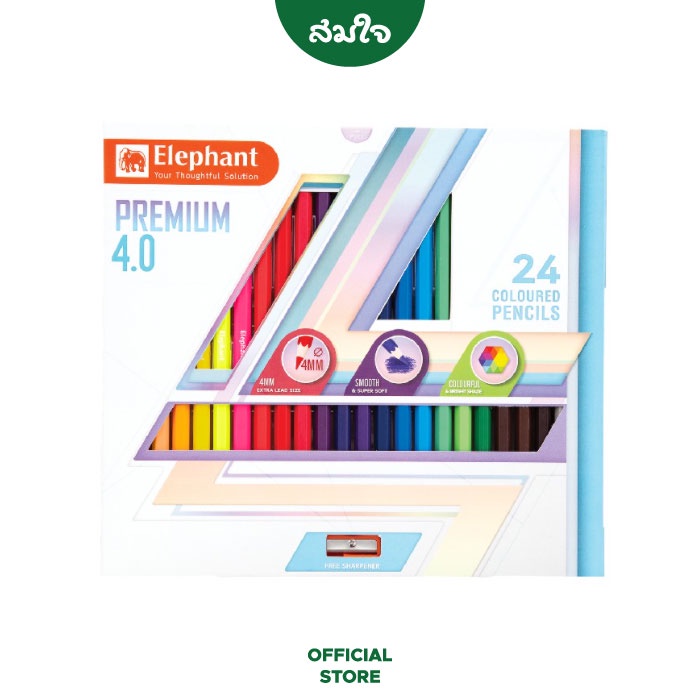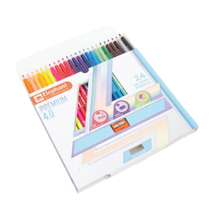 Elephant (เอเลเฟ่นท์) สีไม้ ดินสอสีไม้ แท่งยาว พรีเมี่ยม 4.0 12 24 36 48 สี จำนวน 1 กล่อง