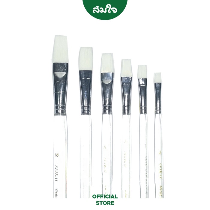 Seikai พู่กันสีน้ำ พู่ก ันสีอะคริลิค แบบแบน ขนขาว