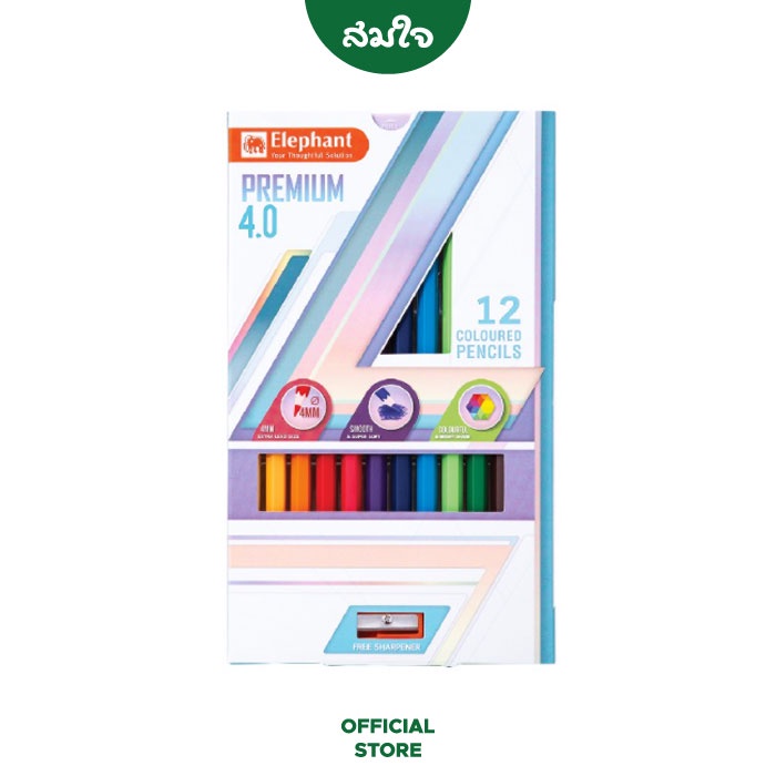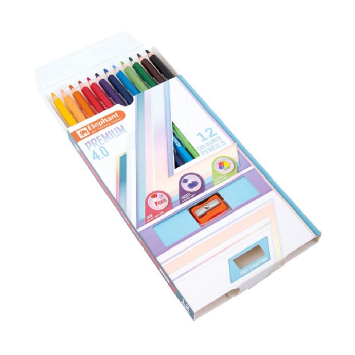 Elephant (เอเลเฟ่นท์) สีไม้ ดินสอสีไม้ แท่งยาว พรีเมี่ยม 4.0 12 สี จำนวน 1 กล่อง