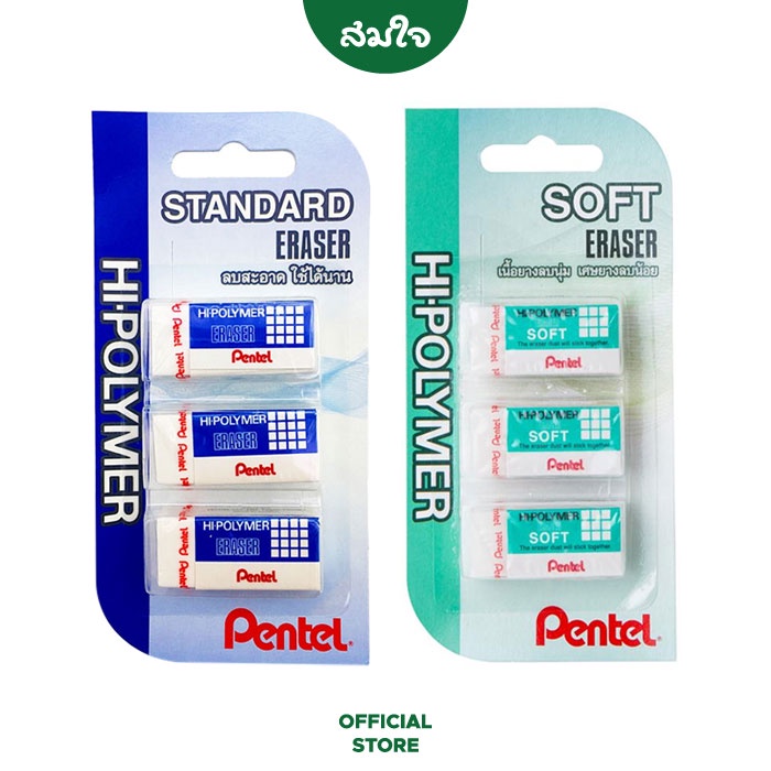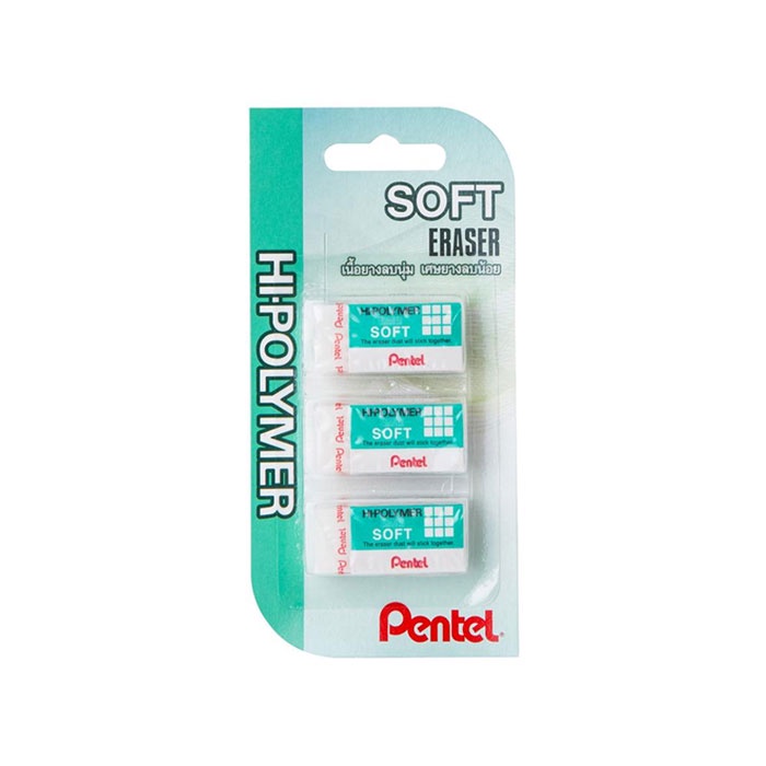 Pentel (เพนเทล) ยางลบ Hi-polymer / Soft Lightแพ็ค 3 ชิ้น ยางล บดินสอ ของแท้ สมใจเครื่องเขียน Somjai