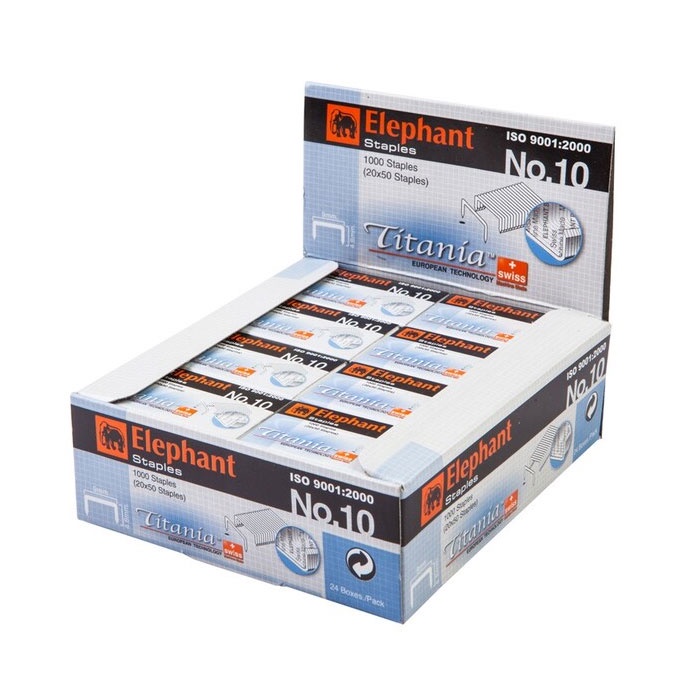 Elephant (ตราช้าง) ไส้แม็กซ์ ลวดเย็บกระดาษ ไททาเนียม No.10 1แพ็ค / 24กล่อง