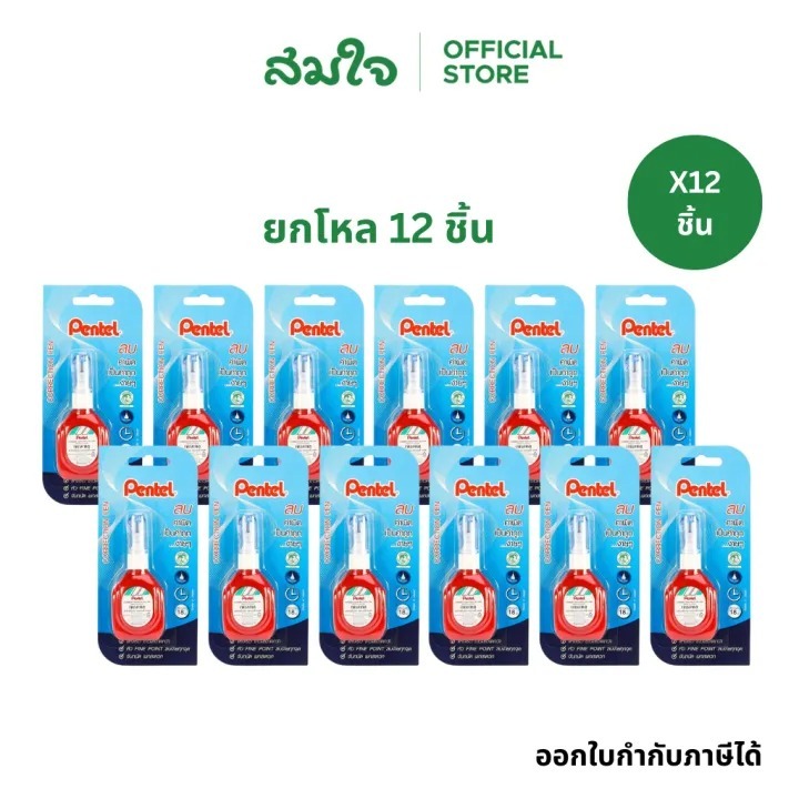 [แพ็ค 12 ชิ้น] Pentel เพนเทล ปากกาลบคำผิด น้ำยาลบคำผิด ลิควิด ขวดสีแดง 18 มล. #ZLC1S6