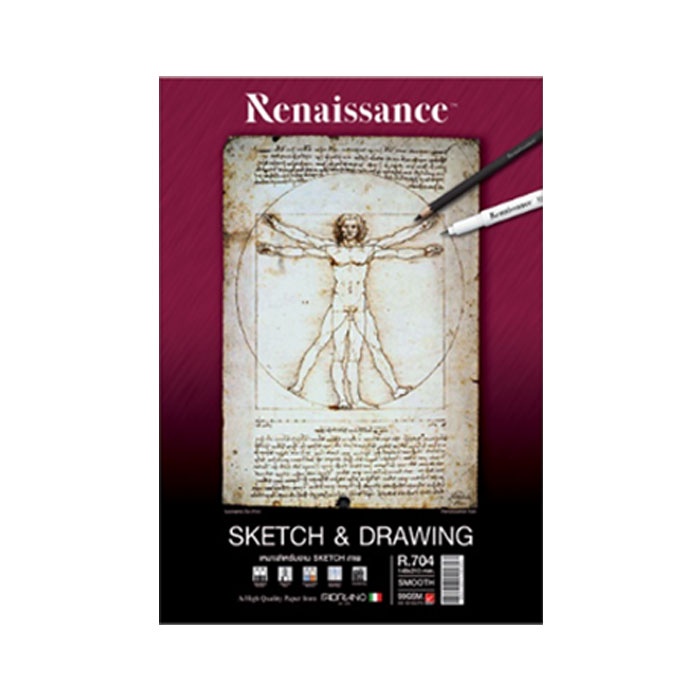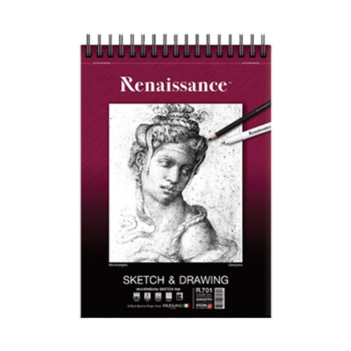Renaissance (เรนาซองซ์) สมุดวาดเขียน สมุดสเก็ตช์ 90 แกรม ผิวเรียบ A4/ A5 ร้อยลวด/ สันกาว R-701/ R-702/ R-703/ R-704