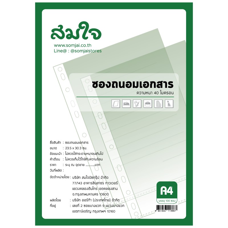ORCA (ออร์ก้า) ซองถนอมเอกสาร 20 แผ่น