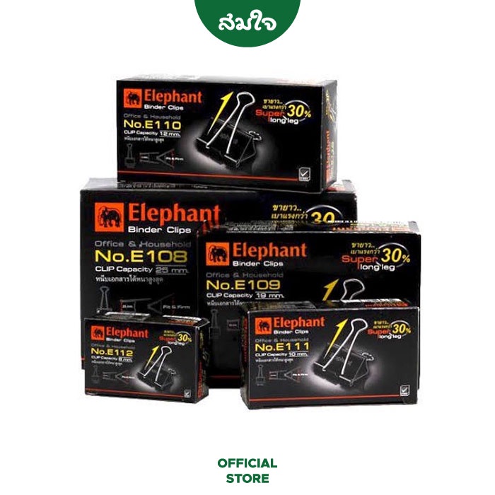 Elephant (ตราช้าง) คลิปดำ No.108 / 109 / 110 / 111 / 112 (12 ตัว/กล่ อง) คลิปหนีบกระดาษ คลิปหนีบ ที่หนีบกระดาษ