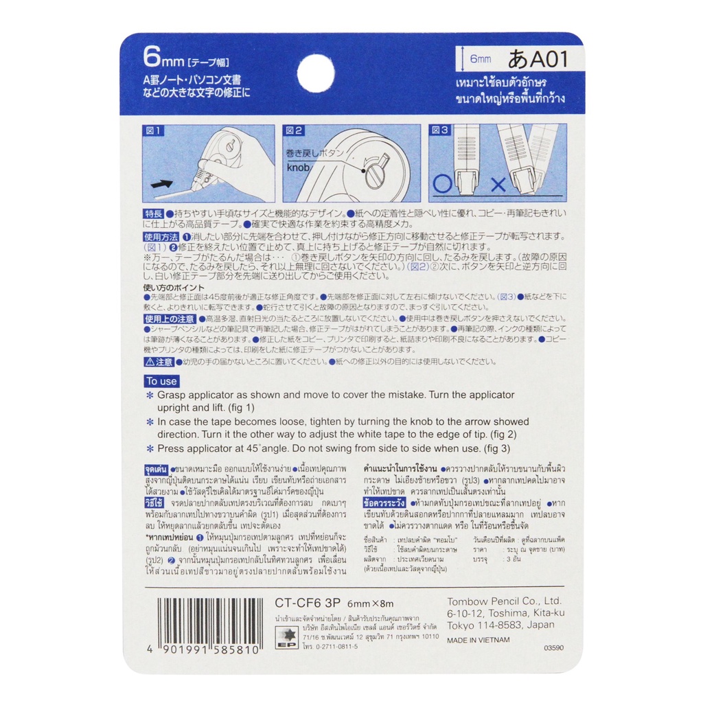 Tombow MONO เทปลบคำผิด ลิควิดเทป ลิควิด CT-CF6 6 mm. แพ็ค 3 ชิ้น สมใจเครื่องเขียน Somjai