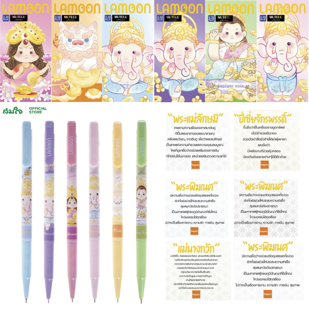 LAMOON (ละมุน) ปากกามูเตลู สำหรับสายมู (เซ็ท 6 แท่ง คละแบบ) ปากกาลูกลื่น ขนาด 0.38 มม. เขียนแล้วราบรื่น