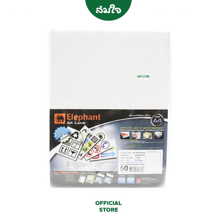 ตราช้าง กระดาษสติ๊กเกอร์ แล็บสติ๊กเกอร์ สีขาวด้าน ขนาดA4 (แพ็ค50)