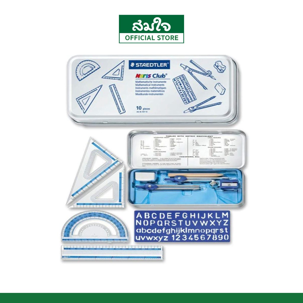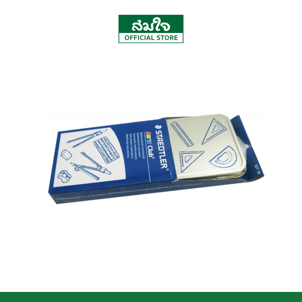 STAEDTLER (สเต็ดเล่อร์) ชุดเรขาคณิต 55710 พร้อมกล่องเหล็ก วงเวียน กบเหลา ยางลบ ดินสอ ไม้บรรทัด ไม้วัดมุม