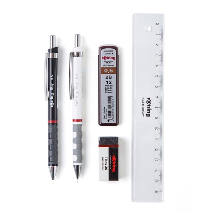 Rotring รอตติ้ง COMBO SET ชุดเ ซ็ทดินสอกด ดินสอกดรอตติ้ง x2 ฟรี ไส้ดินสอ x1 ยางลบ x1 ไม้บรรทัด x1 ดินสอเขียบแบบ ดินสอกด