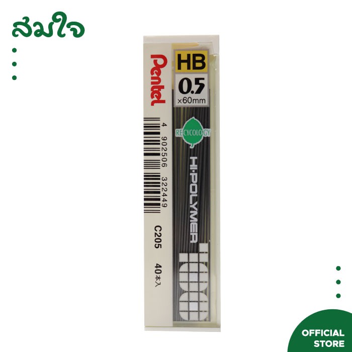 Pentel ไส้ดินสอกด Hi-Polymer (0.5มม./40ไส้) C205 ไส้ดินสอ ดินสอกด ดินสอ ของแท้ สมใจเครื่องเขียน Somjai