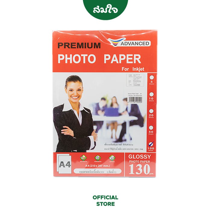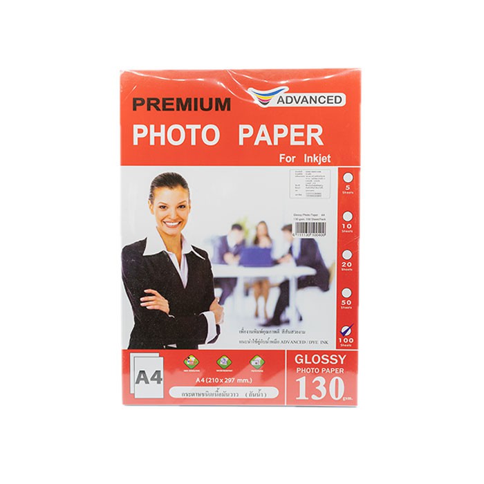 Advanced กระดาษโฟโต้ GLOSSY 130g. จำนวน 100 แผ่น