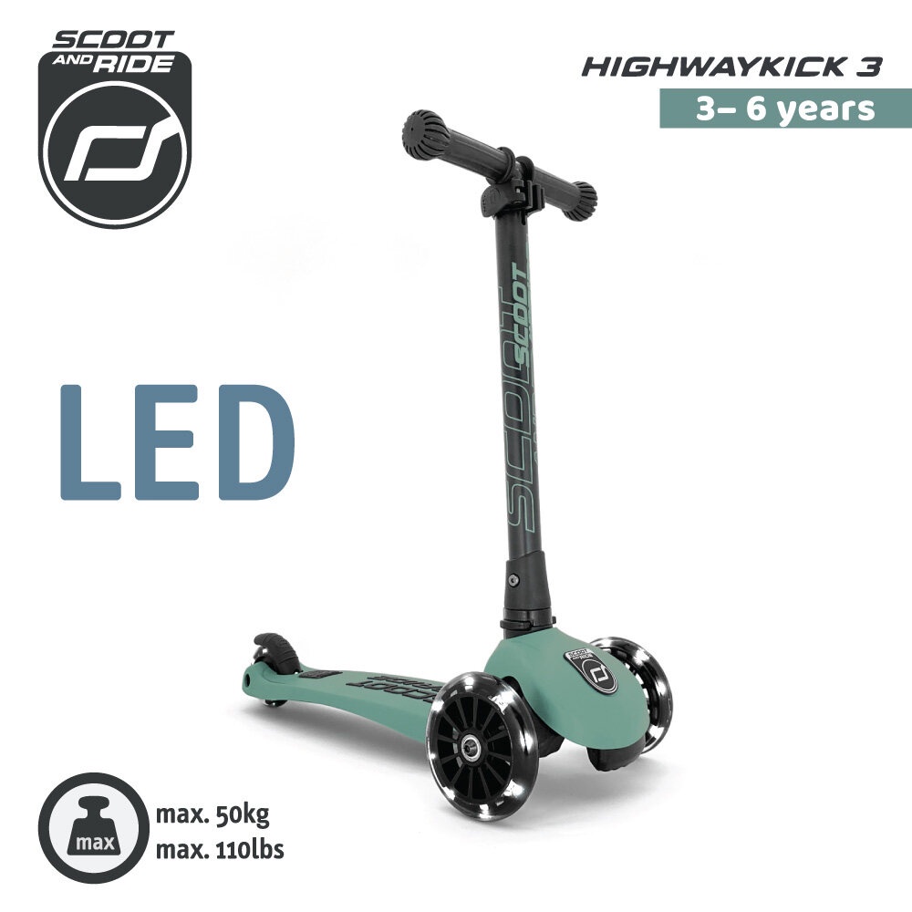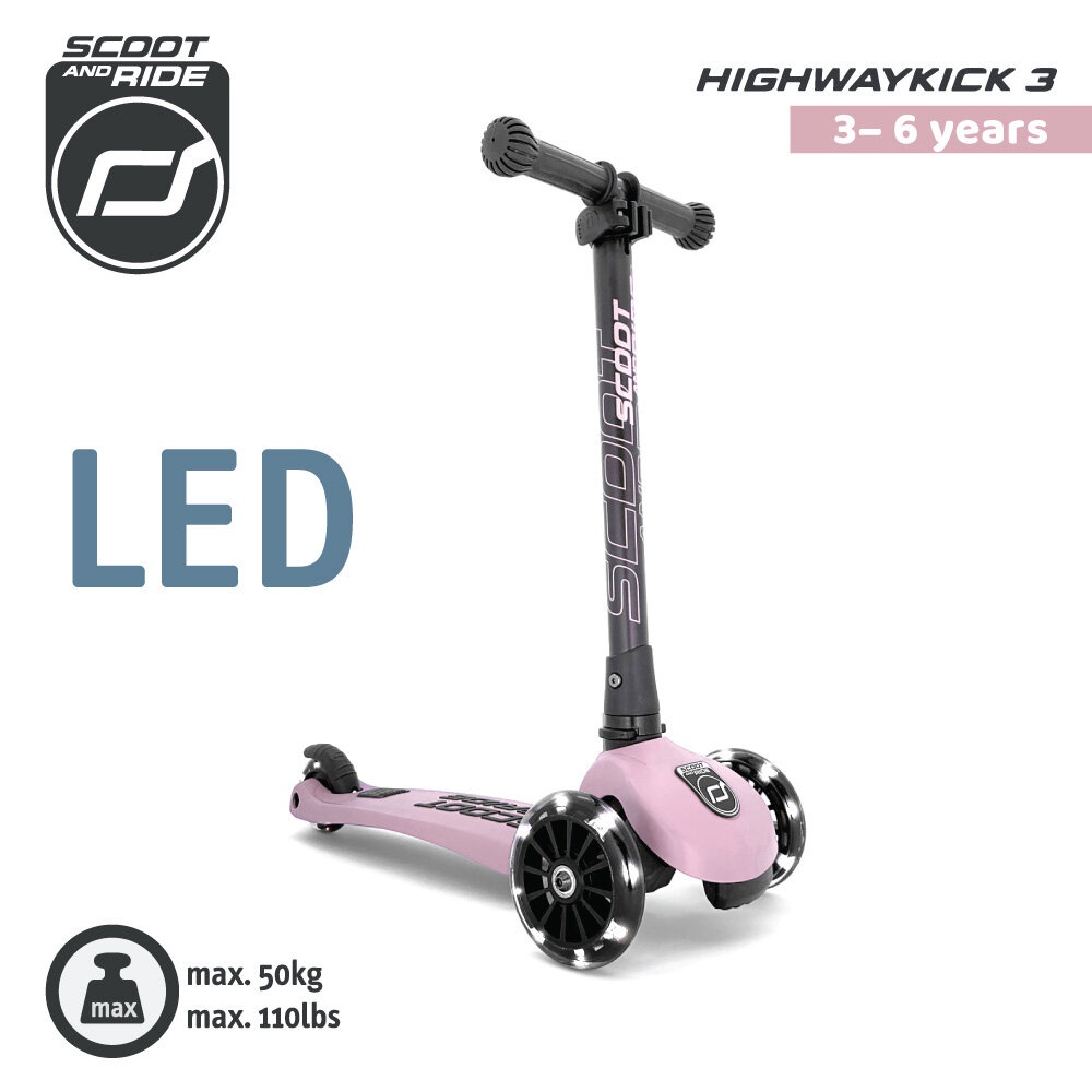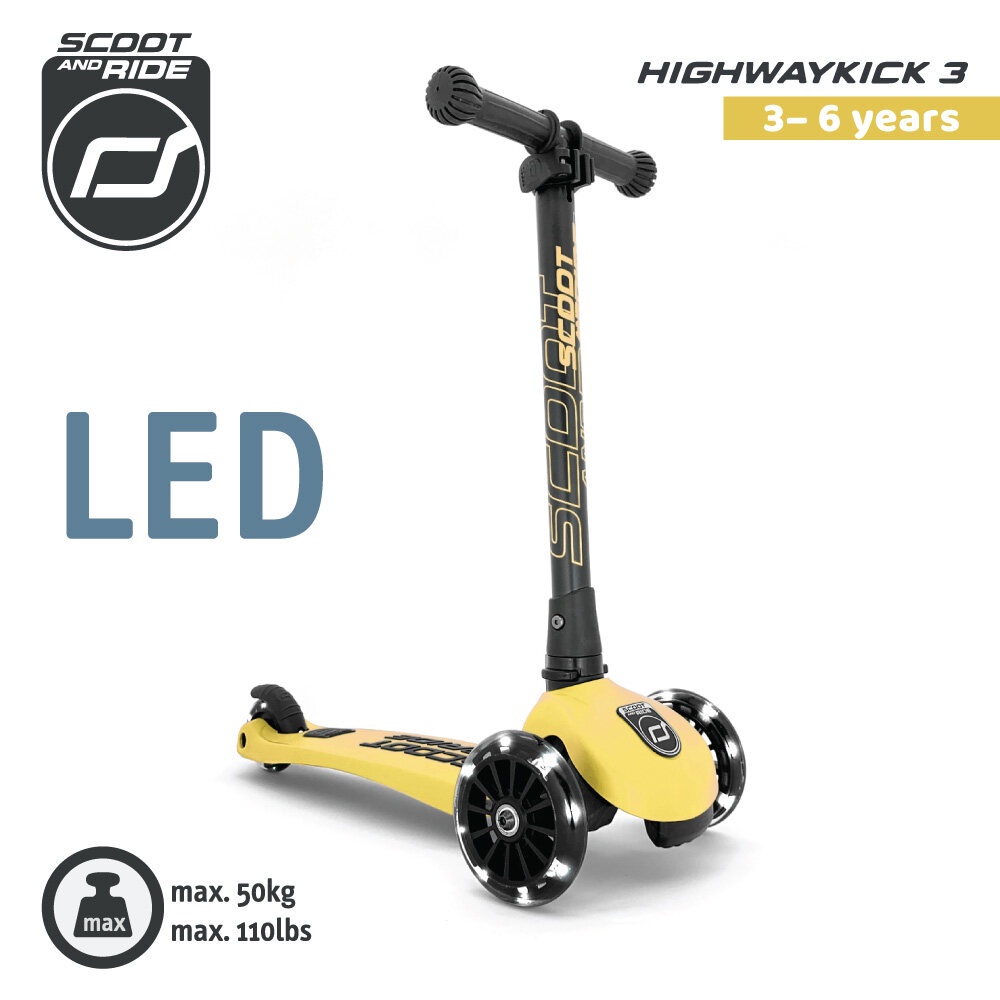 [ใช้โค้ดคู่ลดเพิ่ม] Scoot and Ride Highway รุ่น Kick 3 สกู๊ตเตอร์ขาไถ ปรับความสูงได้ 3 ระดับ ล้อพรีเมี่ยมแบบ Led