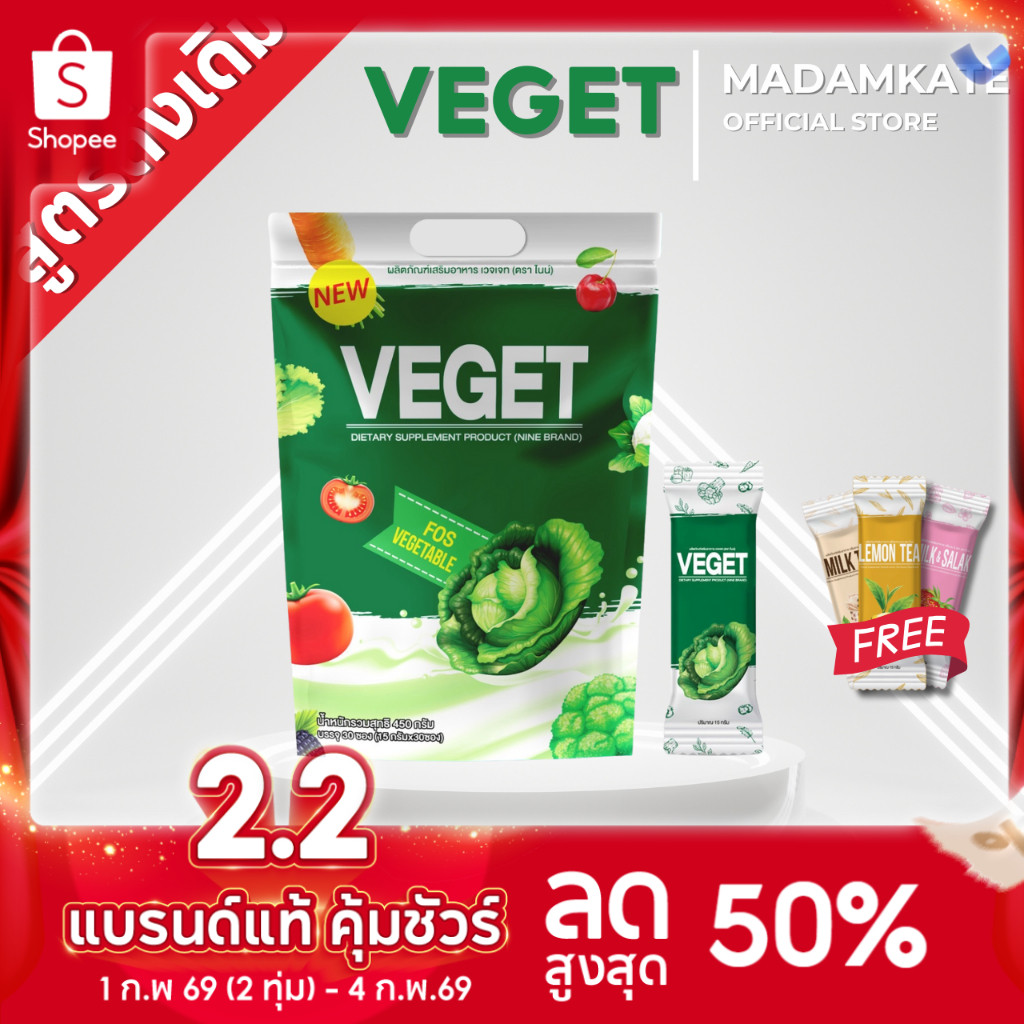NINE Vegetable นํ้าผัก สูตรดั้งเดิม คละทุกรสชาติ แพ็กเกจใหม่ 30ซอง ซื้อ 1แถม2 (แถมนํ้าชงไนน์6ซอง)