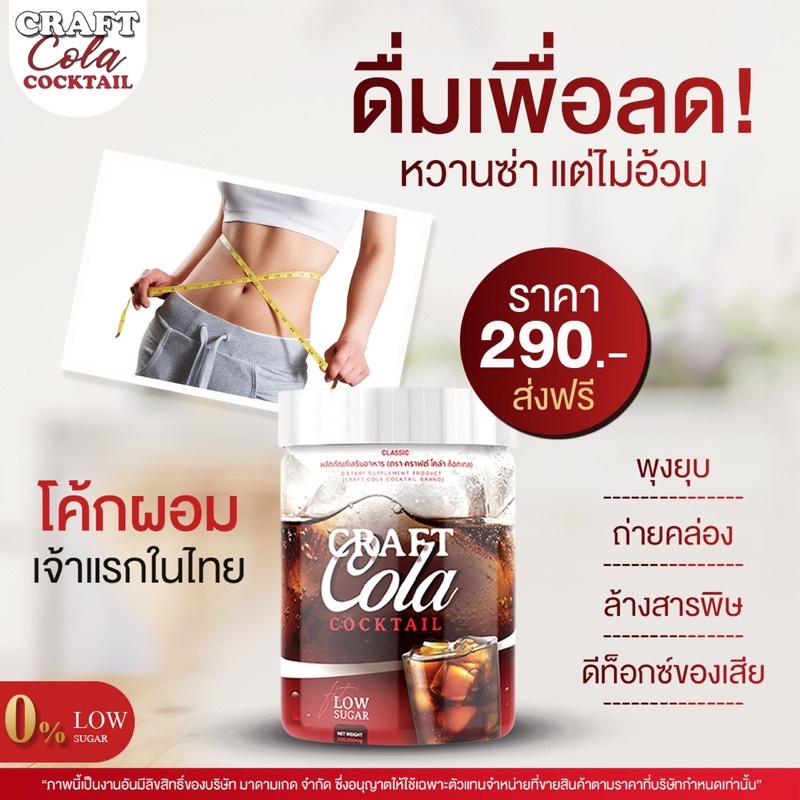 ✅ส่งฟรี✅ Craft Cola คราฟ กลิ่นโคล่า โคล่าชงผอม ดีท็อก คุมหิว ไม่มีน้ำตาล Keto Cola แคลต่ำ คีโต โคล่าลดน้ำหนัก