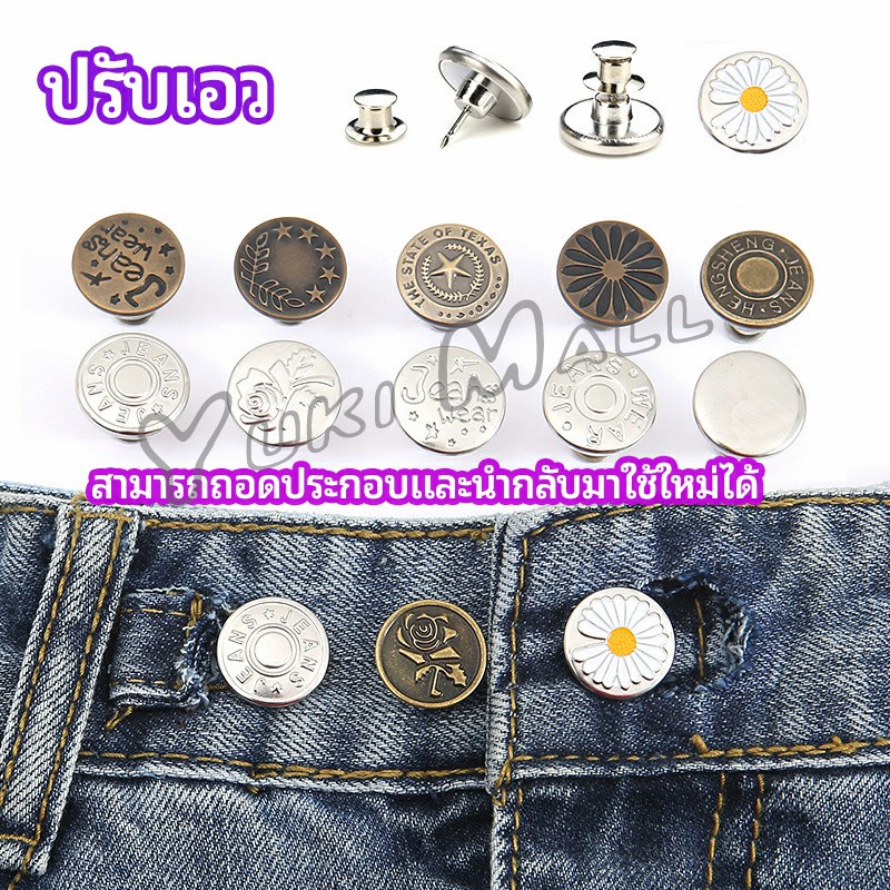 Yuki กระดุม ปรับเอวกางเกง ปุ่มที่ถอดออกได้ เป็นเข็มหมุด ปรับได้ตามต้องการ jeans buttons