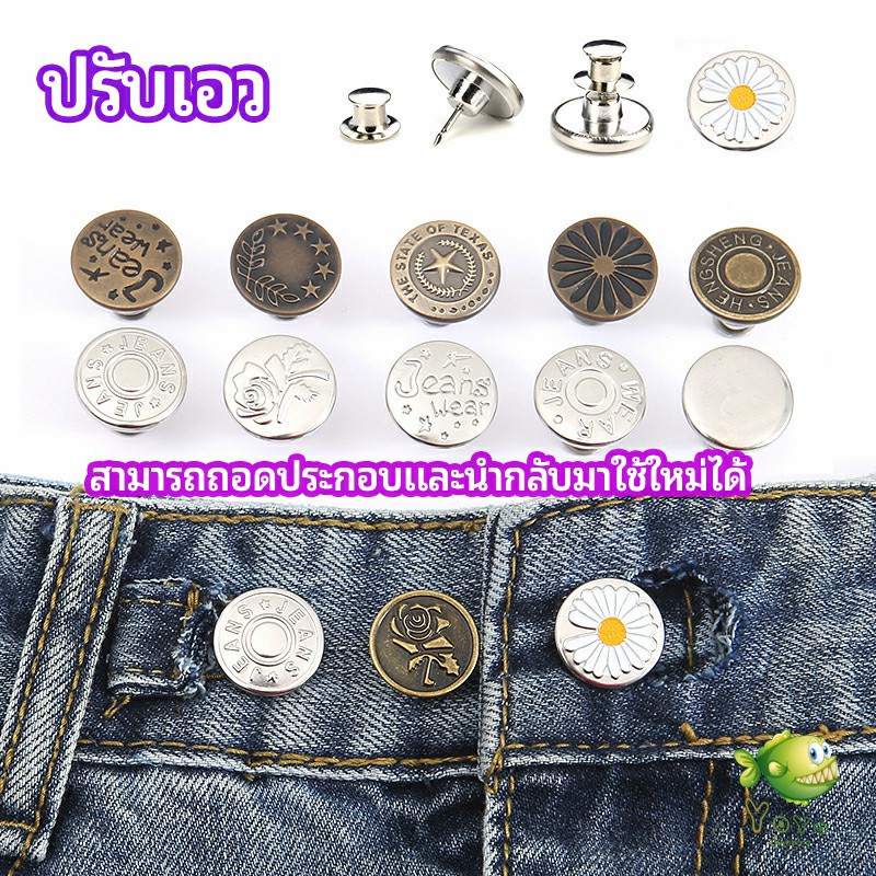 YOYO กระดุม ปรับเอวกางเกง ปุ่มที่ถอดออกได้ เป็นเข็มหมุด ปรับได้ตามต้องการ jeans buttons