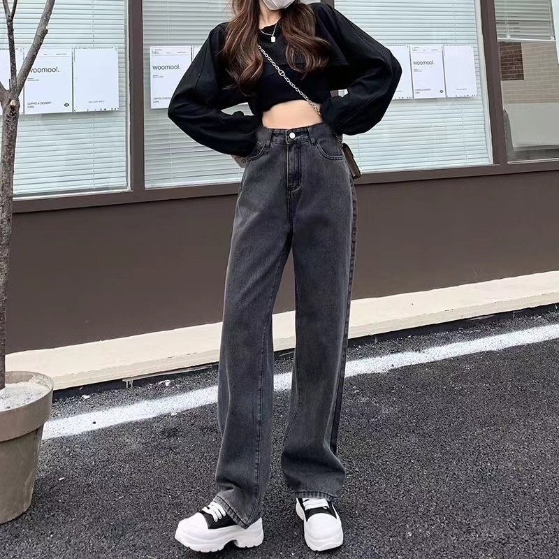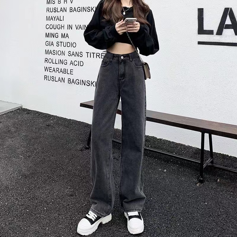 Queen-Jeans กางเกงยีนส์ขากว้าง/Wide Leg Pants Jeans Women's New Loose High Waist Drape Mopping Pants