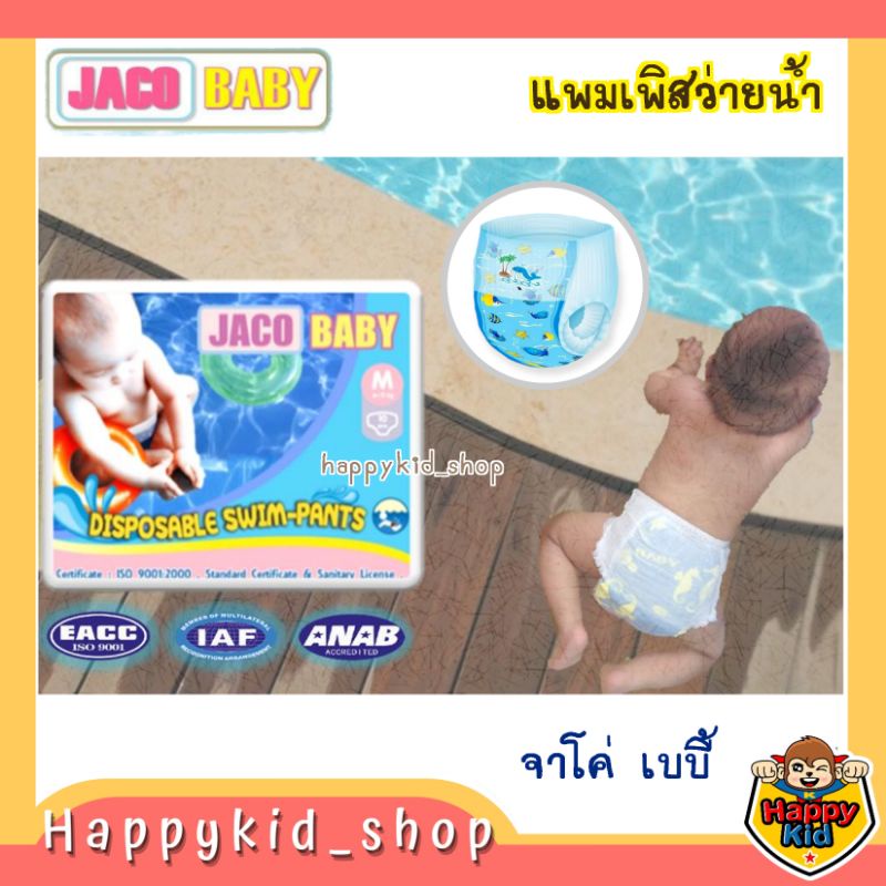 **กล่องใหญ่ 10 ชิ้น** SWIMMIMG DIAPER แพมเพิสว่ายน้ำ สำหรับเด็ก แบบกางเกง ใส่สบายไม่อุ้มน้ำ Jaco Baby