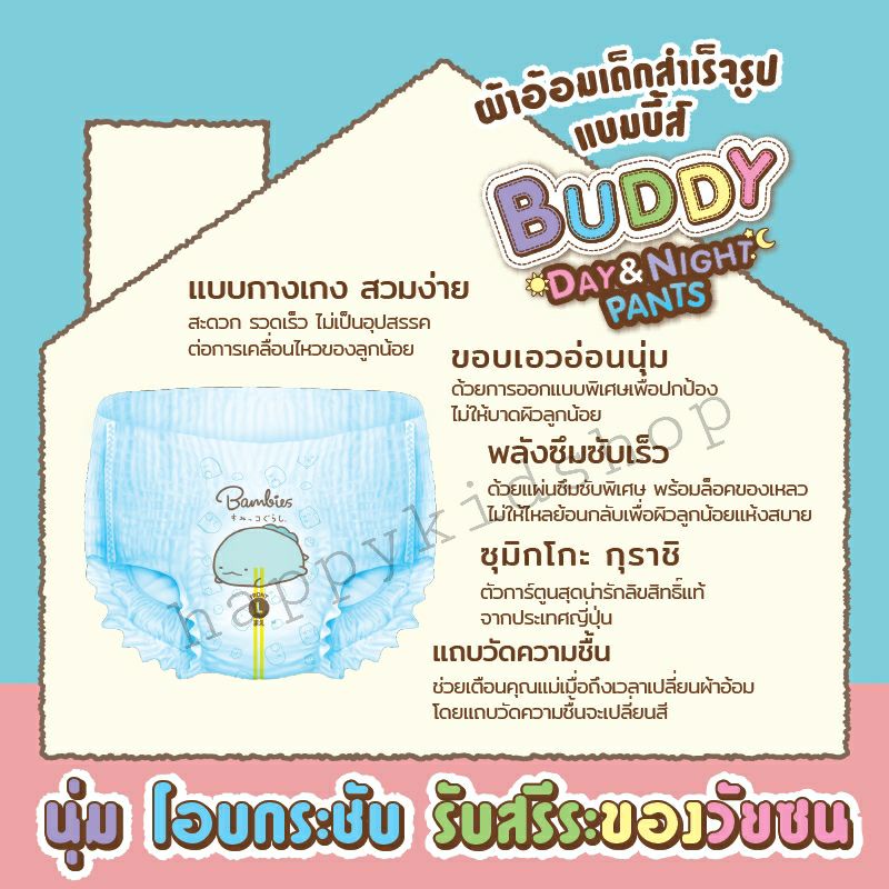 **แพคเดี่ยว** โฉมใหม่!! Bambies Buddy Day&Night Pants ผ้าอ้อม แพมเพิส แบมบี้ส์ บัดดี้