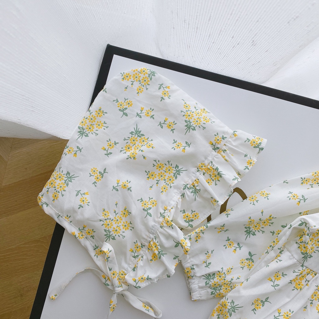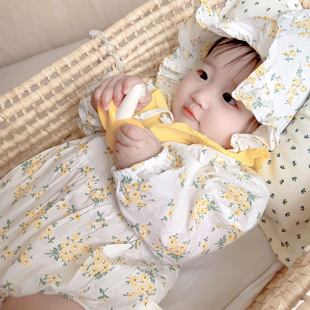 ชุดรอมเปอร์เด็ก ลายดอก และหมวก 2 ชิ้น