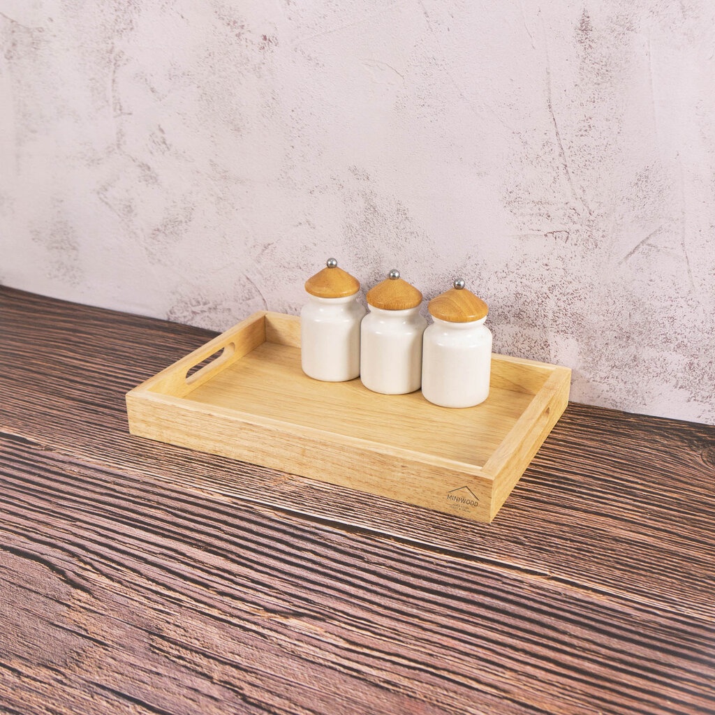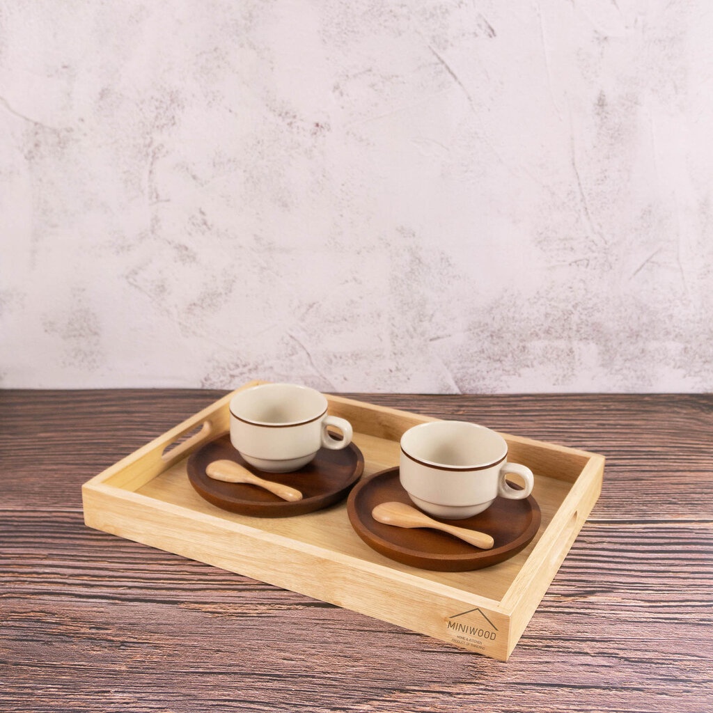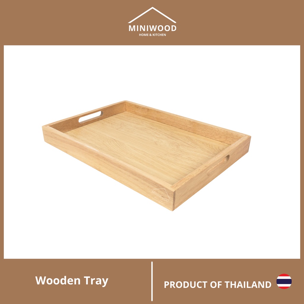 MINIWOOD ถาดเสิร์ฟ สี่เหลี่ยม ถาดไม้ Wooden Tray ไม้ยางพารา