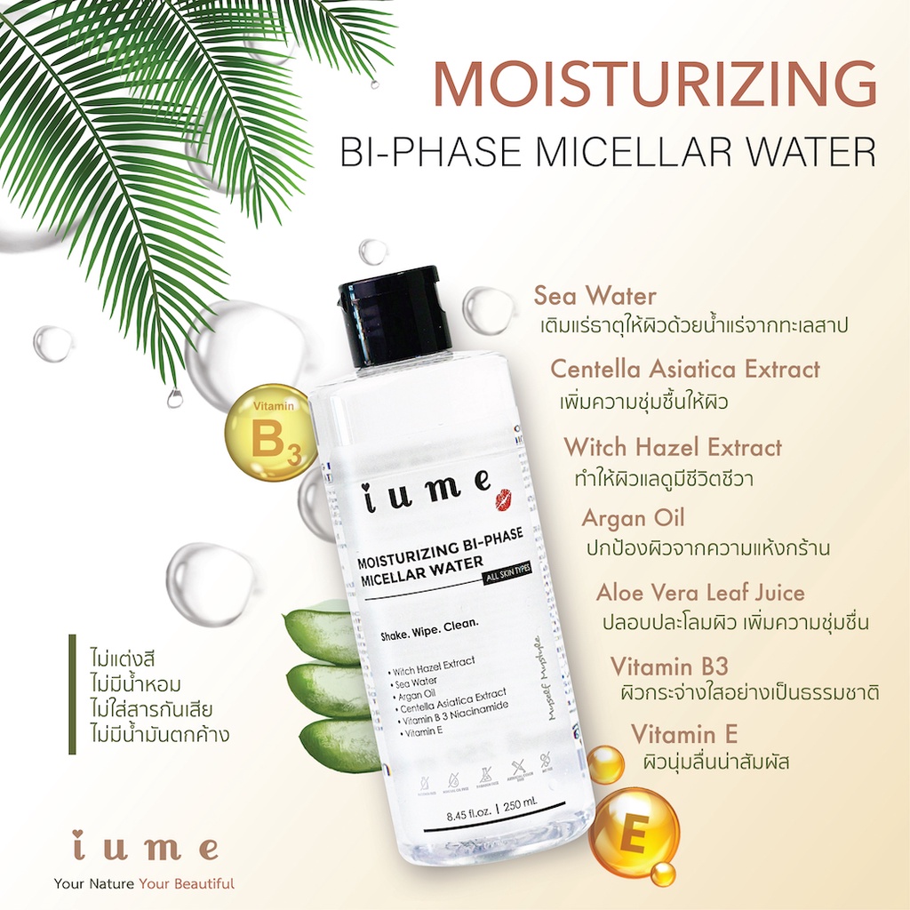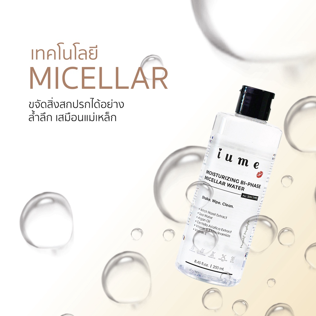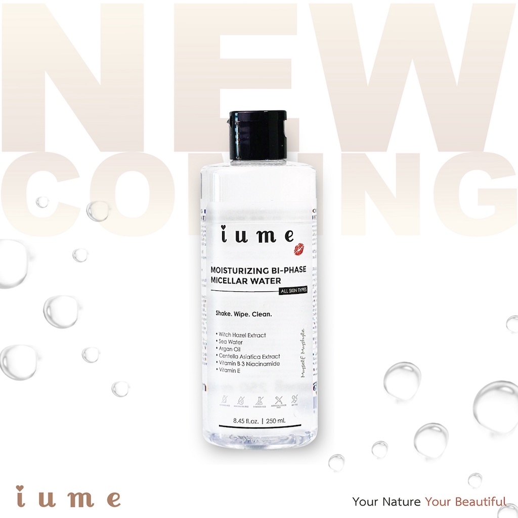 ไบเฟส-ไมเซล่า คลีนซิ่ง วอเตอร์ ไอยูมี Bi-Phase Micellar Water iume สูตรบำรุงผิว อ่อนโยน ชุ่มชื่น เหมาะสมต่อทุกสภาพผิว