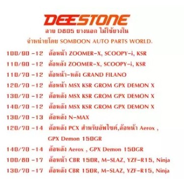DEESTONE D805 ยางนอกมอเตอร์ไซค์ ขอบ 12-17 ไม่ใช้ยางใน