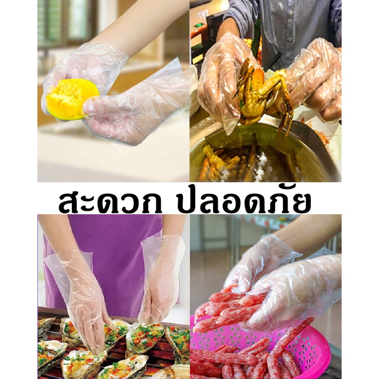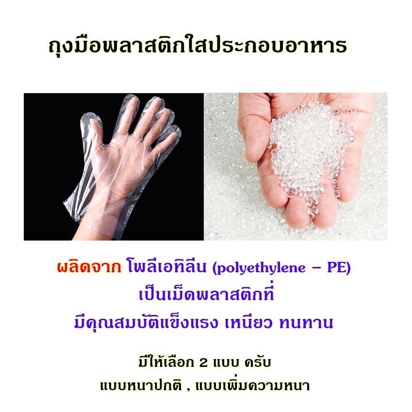 ถุงมือพลาสติกใส (หนาปกติ-เพิ่มหนา) ถุงมืออาหาร ถุงมือใช้แล้วทิ้ง (แบบใช้แล้วทิ้ง) Plastic Glove