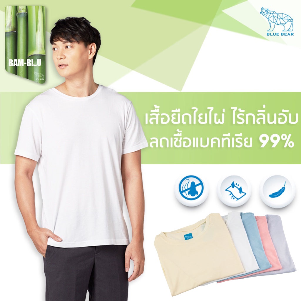 เสื้อยืดผู้ชาย ลดแบคทีเรีย เสื้อยืดคอกลม BAM-BLU MEN ลดกลิ่นอับ ระบายอากาศได้ดี สีพื้น : 17RT01