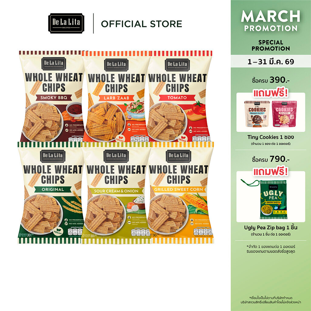 [1 ซอง] WHOLE WHEAT CHIPS 30 กรัม ขนมอบกรอบอร่อย แคลต่ำ ทำจากโฮลวีต De La Lita เดอลาลิต้า โฮลวีตชิปส์ ขนมคลีน