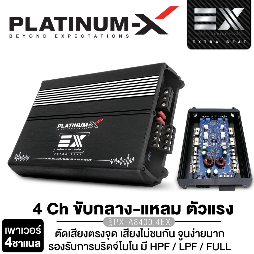 PLATINUM-X เพาเวอร์แอมป์ CLASS AB 4CH แอมป์รถยนต์ PX-A4500.4RA/PX-A850.4PRD/PX-A8400.4EX 1เครื่อง